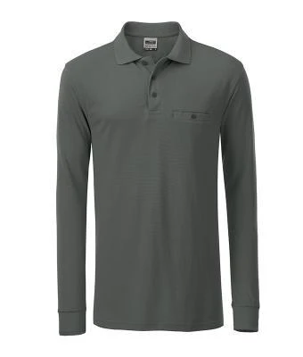 Durable, easy care long-sleeved poloshirt with breast pocket