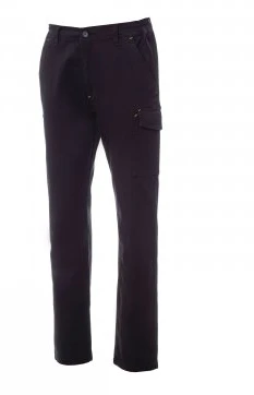 Trousers with belt loops and elastic waist, zip and button closure. Triple-stitched reinforced seams on the crotch and inside leg, double-stitched side seams, two classic front pockets, coin pocket, right side tape measure pocket, left side pocket with LOCK SYSTEM flap closure, two back pockets, one with flap and Velcro
