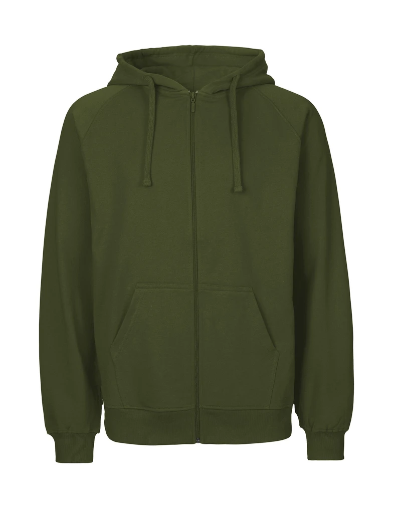 Material: 100% Organic Fairtrade Cotton, Fleece, brushed inside; Weight: 300gsm; Casual fitted, Double-lined hood. Kangaroo pocket, Neck tape. Adjustable flat strings. Rib knitted sleeve cuffs & waistband. YKK-Zipper at front. Ringspun combed cotton. Black, Navy & Sp.Grey colors also available in 4XL-5XL; Certificates: OEKO-TEX® STANDARD 100, 100% CERTIFIED ORGANIC COTTON, FAIR WEAR, EU ECOLABEL, SA8000, NEUTRAL® RESPONSIBILITY