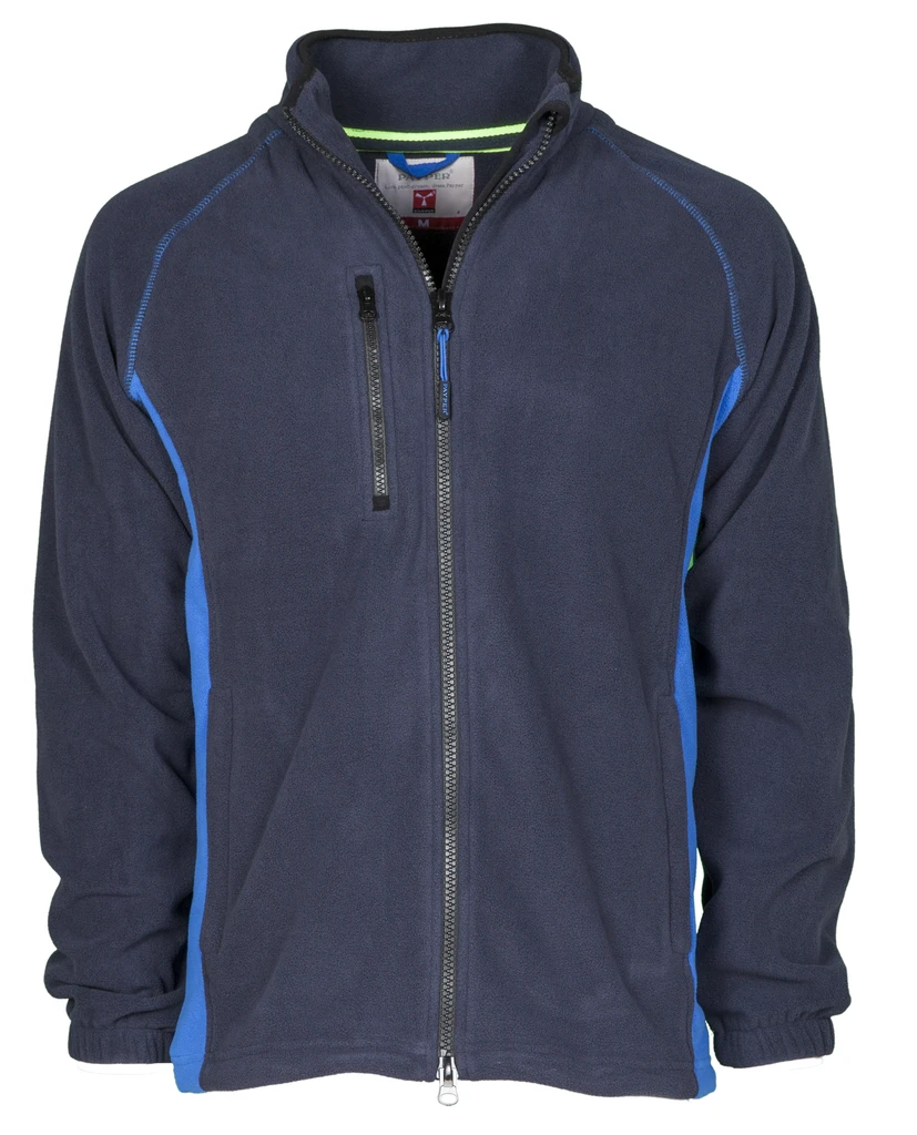 Men’s two-tone fleece, with black plastic 8 mm zip, raglan sleeves, adjustable drawstring at the waist, elasticated cuffs, two pockets with concealed zip, one front zip pocket, neck with contrasting reinforcement tape, reinforced seams