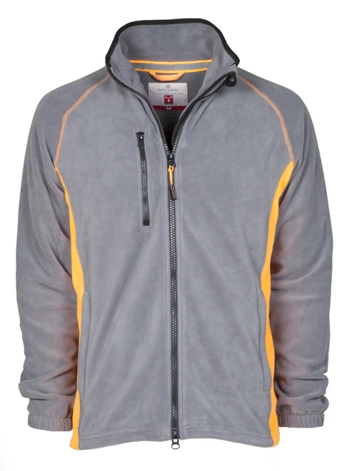 Men’s two-tone fleece, with black plastic 8 mm zip, raglan sleeves, adjustable drawstring at the waist, elasticated cuffs, two pockets with concealed zip, one front zip pocket, neck with contrasting reinforcement tape, reinforced seams