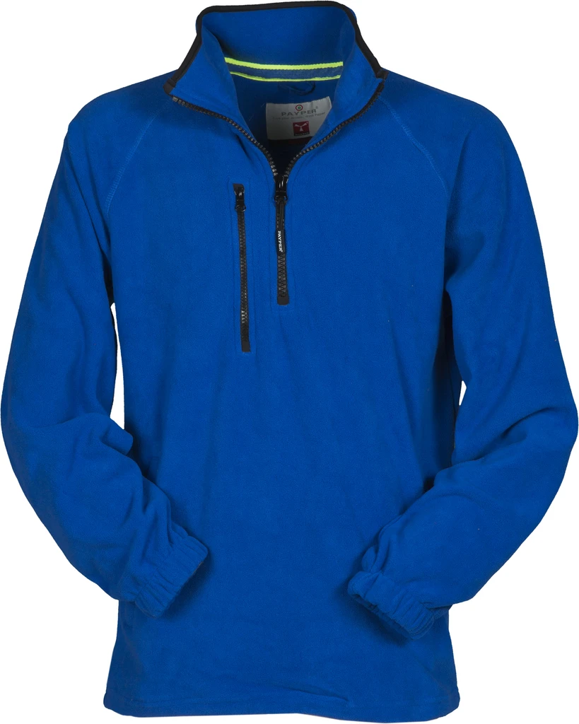 Fleece, with black plastic 8 mm half zip, raglan sleeves, adjustable drawstring at the waist, elasticated cuffs, two pockets with concealed zip, one front zip pocket, neck with contrasting reinforcement tape, reinforced seams