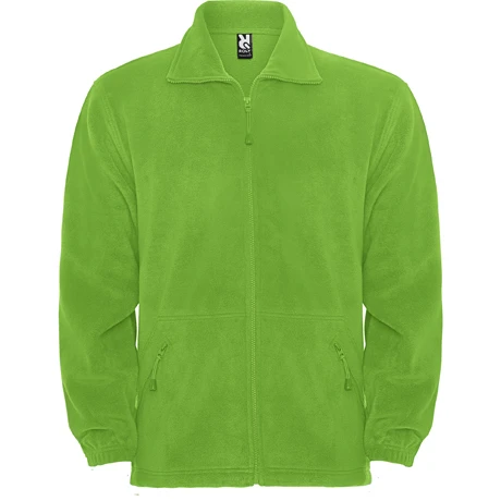 Fleece jacket, with high necked lined collar and matching full zipper. Side pocket with zipper, elastic cuffs and waist with side adjusters.