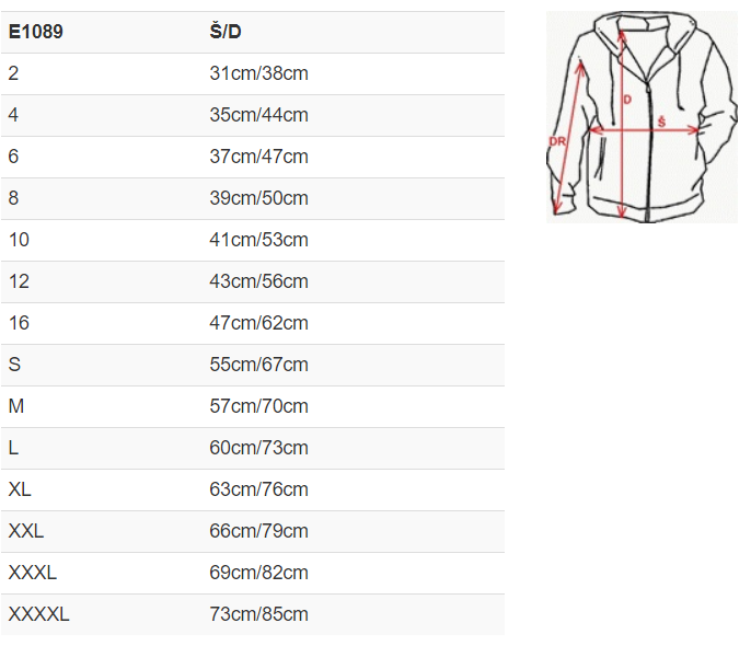 | Velikost extra | 2, 4, 6, 8, 10, 12, 16 |