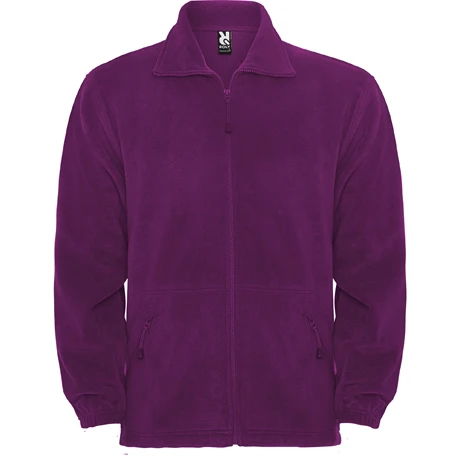 Fleece jacket, with high necked lined collar and matching full zipper. Side pocket with zipper, elastic cuffs and waist with side adjusters.