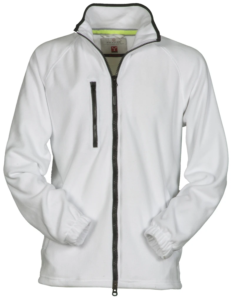 Men’s fleece, with black plastic 8 mm zip, raglan sleeves, adjustable drawstring at the waist, elasticated cuffs, two pockets with concealed zip, one front zip pocket, neck with contrasting reinforcement tape, reinforced seams