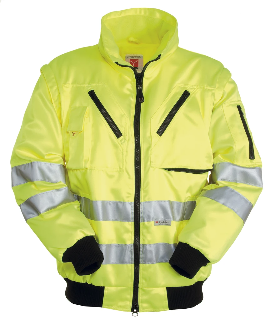 Men’s high-visibility, lightweight jacket with 3M stripes, 8 mm plastic zip with double metal pull, elasticated cuffs and hem, two front pockets with zip, two breast pockets with zip, mobile phone pocket, one outer zip on the chest for easier printing/embroidery, one multi-function pocket on the sleeve. Pile lining, one inner pocket, zip for easier printing/embroidery