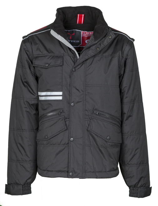 Men’s lightweight jacket with detachable sleeves, 8 mm plastic zip with metal pull, with flap fastening and plastic buttons, contoured back, two LOCK SYSTEM outer pockets, two pockets with zip, slanting pockets for easier access, one smartphone breast pocket and badge holder ring, reflective stripes on the pocket and back. Padded, contrasting fleece lining on the back and collar, one pocket, inner zip for easier printing and embroidery