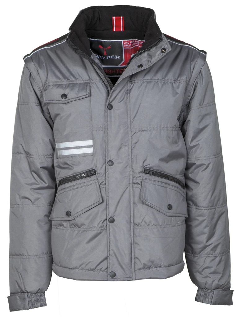 Men’s lightweight jacket with detachable sleeves, 8 mm plastic zip with metal pull, with flap fastening and plastic buttons, contoured back, two LOCK SYSTEM outer pockets, two pockets with zip, slanting pockets for easier access, one smartphone breast pocket and badge holder ring, reflective stripes on the pocket and back. Padded, contrasting fleece lining on the back and collar, one pocket, inner zip for easier printing and embroidery