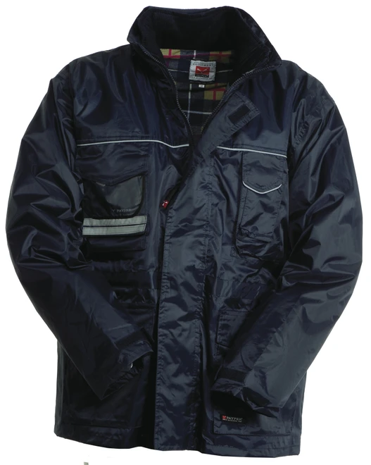 Triple use parka with the following features: unlined external jacket with front and back reflective inserts, hideaway hood, four pockets of which one with a reversible badge holder and one smartphone phone pocket. Detachable inner jacket in quilted husky with two pockets, detachable sleeves, lined interior in Scottish fabric