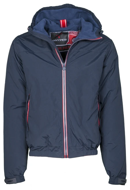 Men’s lightweight jacket, contrasting 8 mm zip, shaped hood with two seams and drawstring, elasticated waist, elasticated and adjustable cuffs, two outer pockets with concealed zip. Padded, micro-fleece lining on the inside collar and back, one inner zip pocket for smartphone with opening for lead, zip on the back and chest for easier printing and embroidery