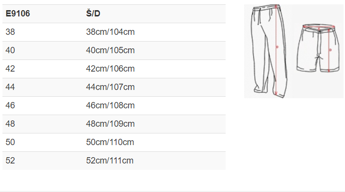 | Velikost extra | 38, 40, 42, 44, 48, 50, 52 |