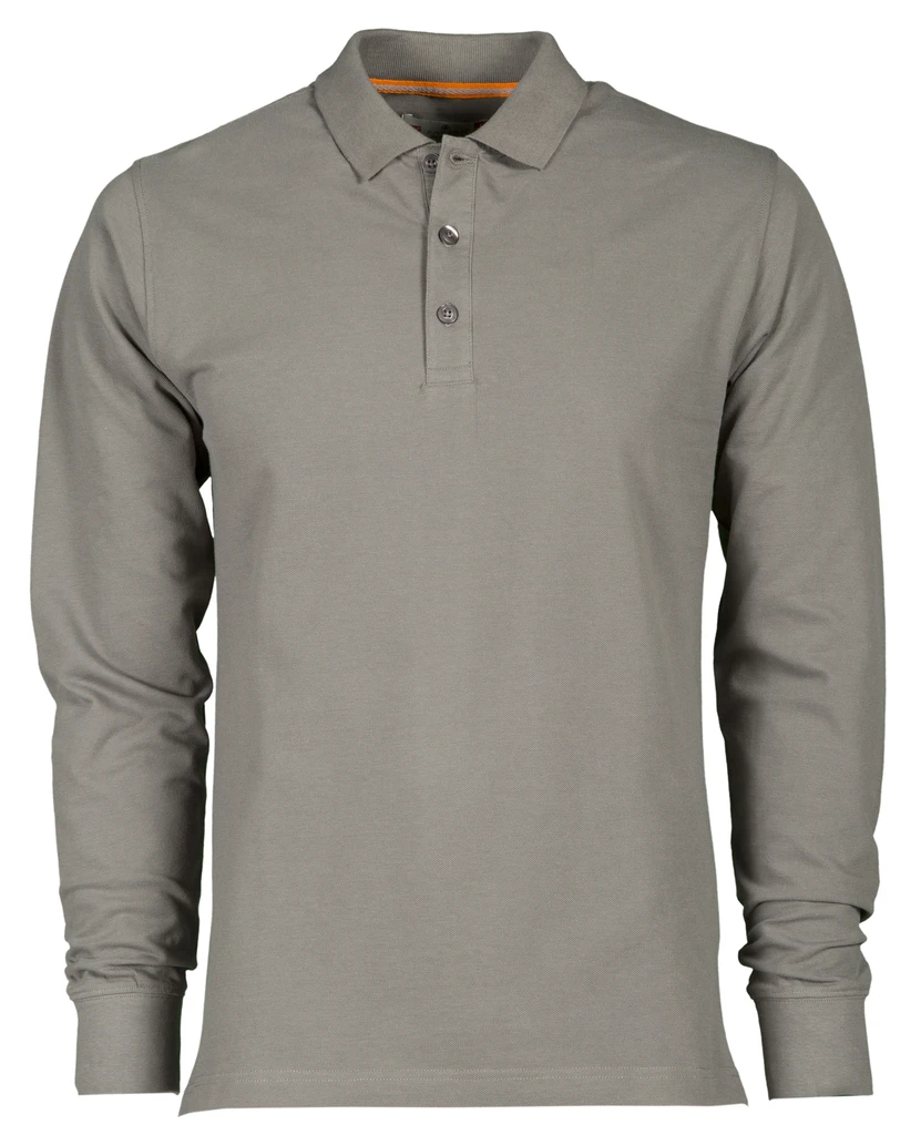 Men's long-sleeved polo shirt with 3, matching, mother-of-pearl effect buttons, rib collar and cuffs, side vents, concealed collar stitching with contrasting tape, stretch seams, side reinforcement tape, inner neck tape