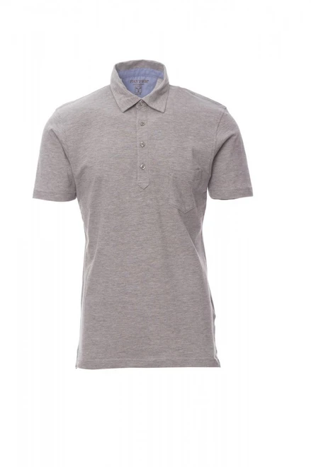 Men’s short-sleeved polo shirt with 4, matching, mother-of-pearl effect buttons, shirt-style pique collar, pocket and light blue poplin inserts on the inside collar, opening and side vents, transfer label, inner neck tape