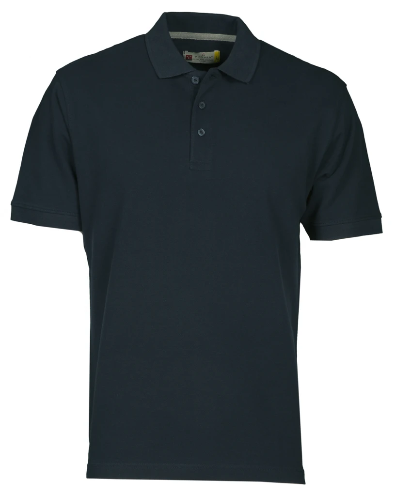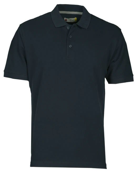 Men’s short-sleeved polo shirt with 3, matching, mother-of-pearl effect buttons, rib collar and sleeve edging, side vents, concealed collar stitching with contrasting tape, stretch seams, side reinforcement tape