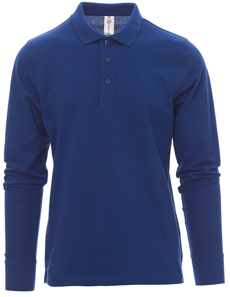 Men’s long-sleeved polo shirt with three mother-of-pearl effect buttons, ribbed collar and cuffs, side vents, concealed collar stitching with matching colour tape, stretch seams, reinforcement tape on the sides