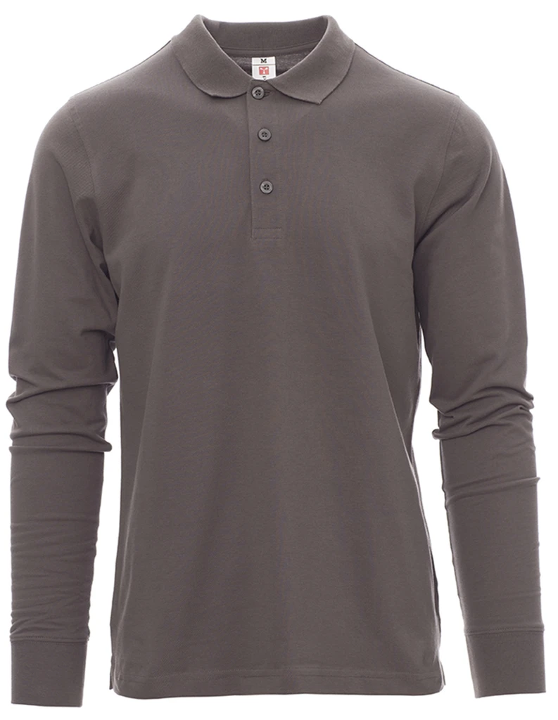 Men’s long-sleeved polo shirt with three mother-of-pearl effect buttons, ribbed collar and cuffs, side vents, concealed collar stitching with matching colour tape, stretch seams, reinforcement tape on the sides