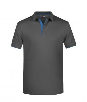 Knitted polo collar and sleeve cuffs with contrasting stripe