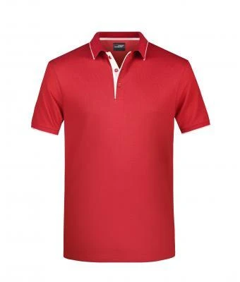 Knitted polo collar and sleeve cuffs with contrasting stripe