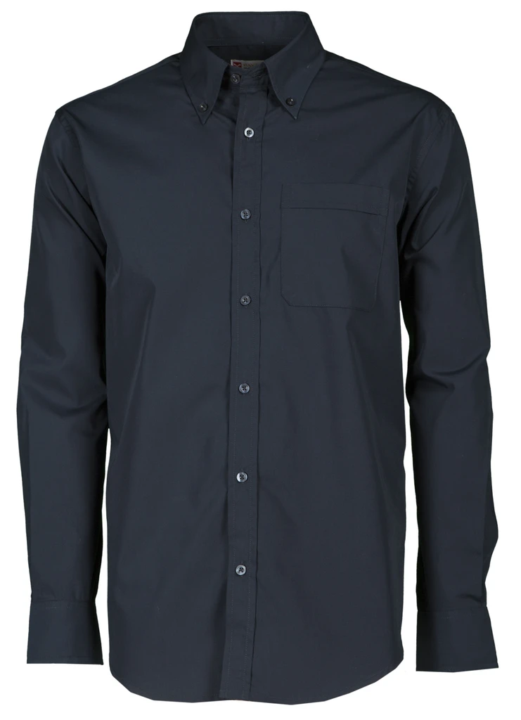 Men’s fine weave combed shirt, slightly tailored, button-down collar, rounded cuff with 2 buttons and button hole, stitched placket with mother-of-pearl effect buttons, one breast pocket, with yoke