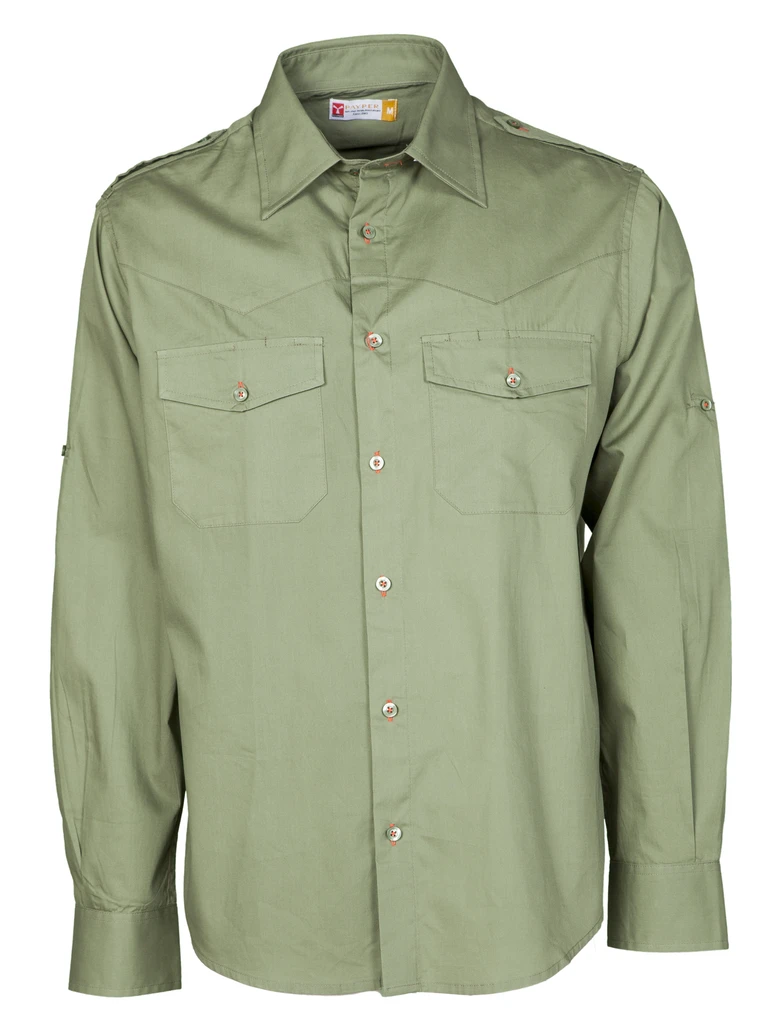 Men’s fine weave combed shirt, slightly tailored, Italian-style collar, tailored cuff with 2 buttons and button hole, stitched placket with matching buttons and red buttonholes (apart from the white version), shaped yoke at the front (apart from the white version), shoulder tabs, two breast pockets with flap, roll up sleeves with button and tab