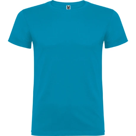 Short sleeve t-shirt, double layer neck with elastane, made in tubular fabric in adult´s sizes, and with side seams in kids´ sizes. Reinforced covered seems in neck.