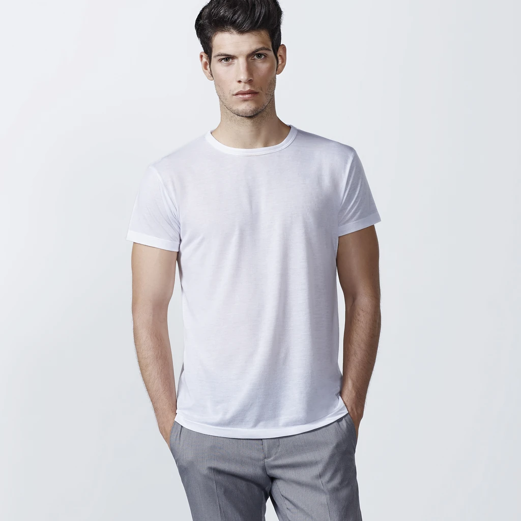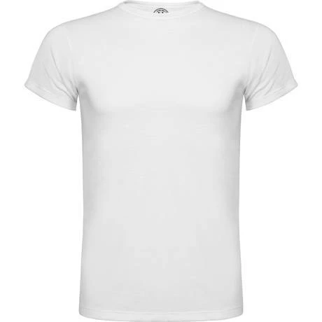 Short sleeve t-shirt with ribbed round collar in the same fabric and side seams. Made of polyester fabric with cotton touch.