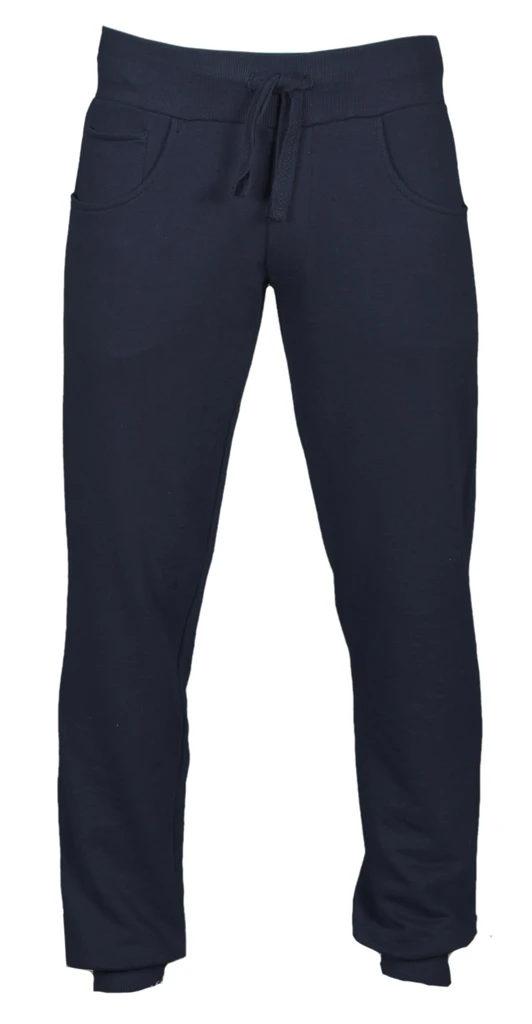 All-season sweatpants with stretch rib at the waist and bottom of the leg, drawstring, two front pockets and a small pocket, zip fly fastening