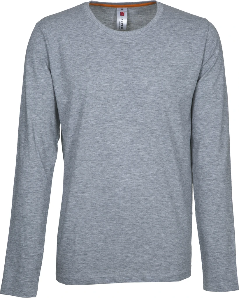 Crew neck T-shir with ribbed long sleeve and collar in spandex mix with top-stitching on front, tape reinforcement from shoulder to shoulder side seam for better wearability
