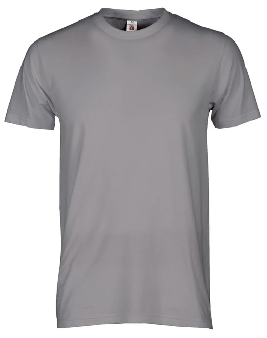 Men’s short-sleeved crew neck t-shirt, with 1.5 cm spandex mix rib neckband with top stitching on the front, tubular structure