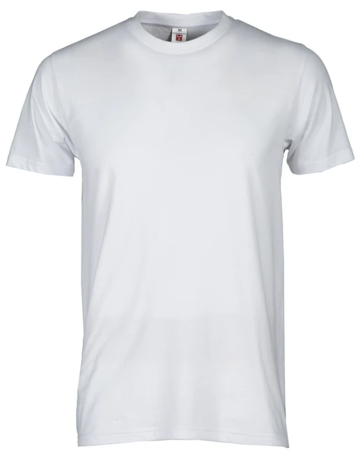 Men’s short-sleeved crew neck t-shirt, with 1.5 cm spandex mix rib neckband with top stitching on the front, tubular structure