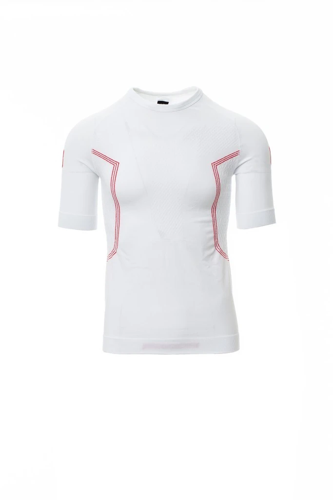 Material: 66% Polyamide, 26% Polyester, 8% Elastane; Men's thermal crew-neck jumper, short raglan sleeves. Soft, stretch fabric, with special weaves on the chest and back, propeller motifs in relief on the hips, to ensure correct breathability and constant thermoregulation. Ribbed neck, bottom and sleeve hems of the same material, for added comfort. Ergonomic tubular structure to ensure a perfect fit to the shape of the body
