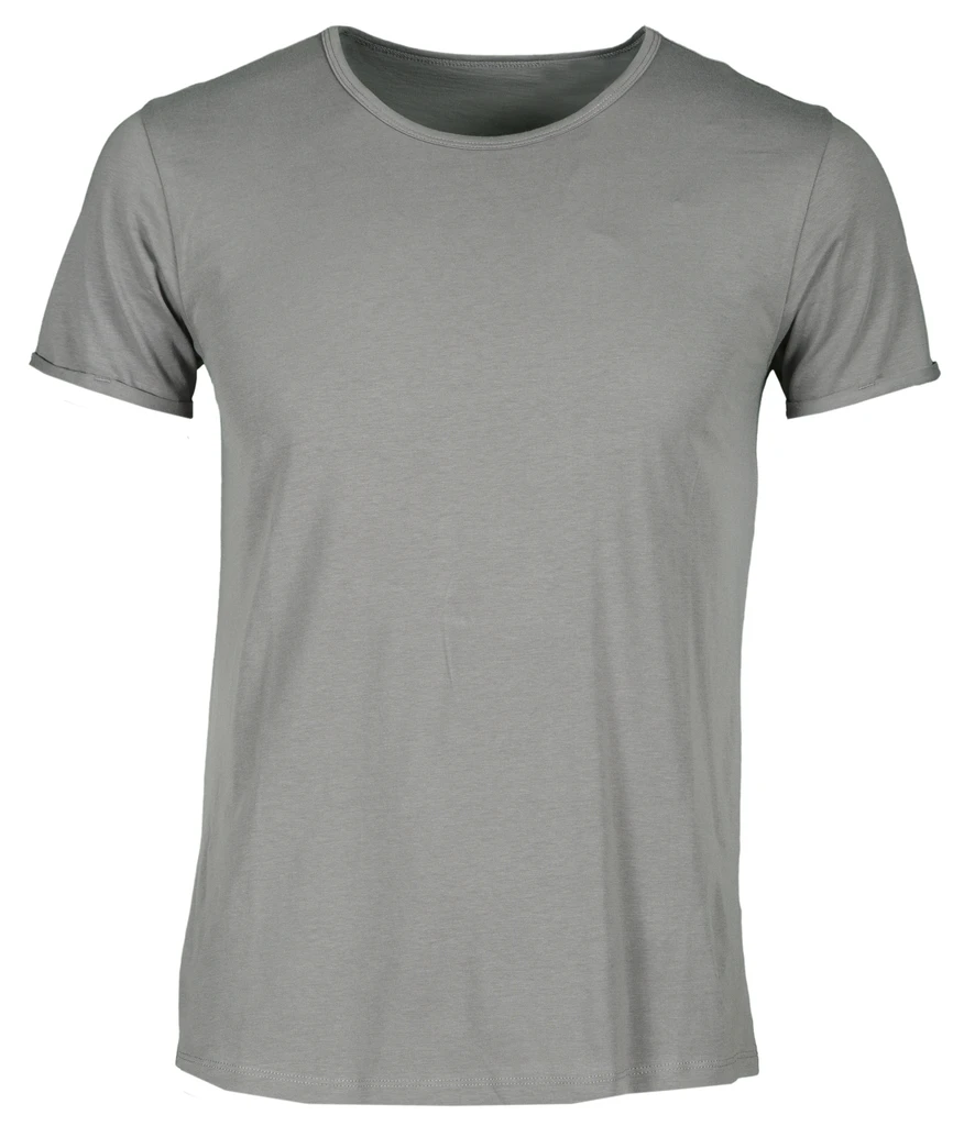 Men’s short-sleeved t-shirt with slightly scooped neck, with narrow edge neckband, sleeves with narrow turn-up, side seams, no label