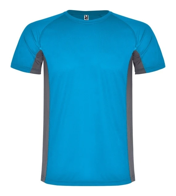 Technical t-shirt combined with two polyester fabrics, short sleeve raglan style. Honeycomb main fabric, and side panels and inner sleeve in microperforated fabric. Crew neck with reinforced covered seams. Comfortable fabric t-shirt and easily fitting to the body.
