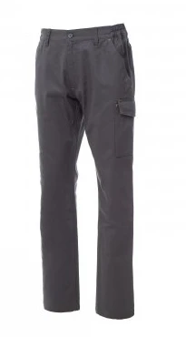 Trousers with belt loops and elastic waist, zip and button closure. Double seams on the crotch and inside leg, two classic front pockets, one coin pocket, one right side tape measure pocket, one left side pocket with LOCK SYSTEM flap closure, two back pockets, one with flap and Velcro