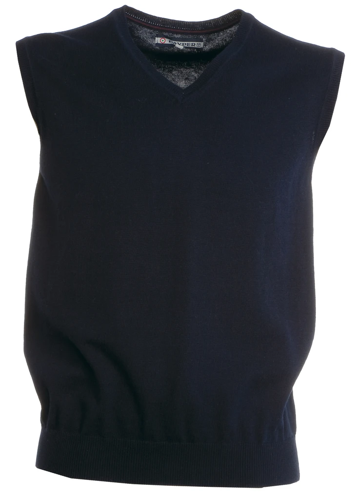 Men’s V neck vest, with fine rib edging and hem, in stocking stitch and fully fashioned without seams