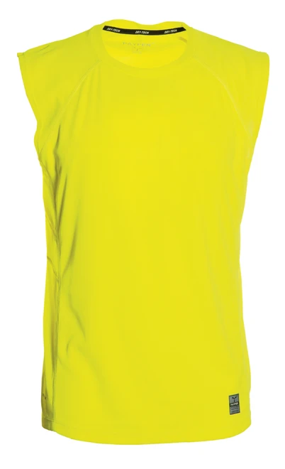 Technical/sports vest with raglan sleeves, double stitched side seams for greater comfort, shaped bottom and longer at the back, reflective insert on the sleeves and back of collar, contrasting neck tape, transfer label