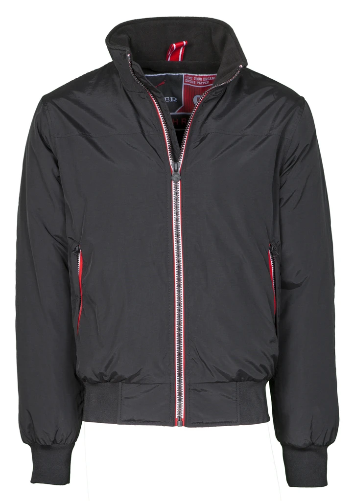 Men’s lightweight jacket, with plastic-covered contrasting zip and metal pull, stretch rib cuffs and hem, two outer pockets with concealed zip. Padded, micro-fleece lining on the inside collar and back, one inner zip pocket for smartphone with opening for lead, zip on the shoulders and chest for easier printing and embroidery