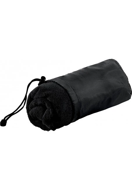 80% polyester / 20% polyamide. Light weight towel for ultra-fast drying. Overlocked seams. Contrast zipped pocket at lower corner. Polyamide color coordinated carry pouch with elasticated drawstring and meshed bottom for ventilation (color Soft Blue: pocket in contrasting Navy). Pocket size: 25 cm. Size: 100 x 50 cm