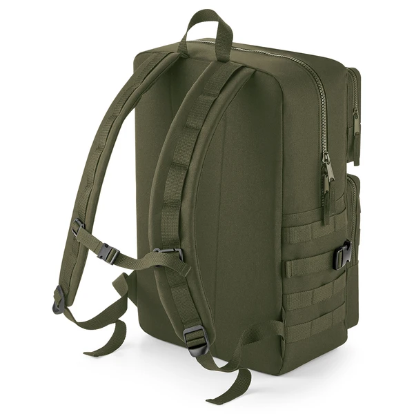 Material: 600D Polyester; Dimensions: 30 x 45 x 22 cm; Capacity: 25 litres; TearAway label for ease of rebranding, military inspired design, dual Rip-Strip™ MOLLE webbing, MOLLE webbing loop detail, two large zippered front pockets, zippered main compartment, internal slip pocket, grab handle, padded back panel, compression straps, padded adjustable shoulder straps, compatible with MOLLE Utility Patch, compatible with Modulr™ Multipockets BG241 and BG242