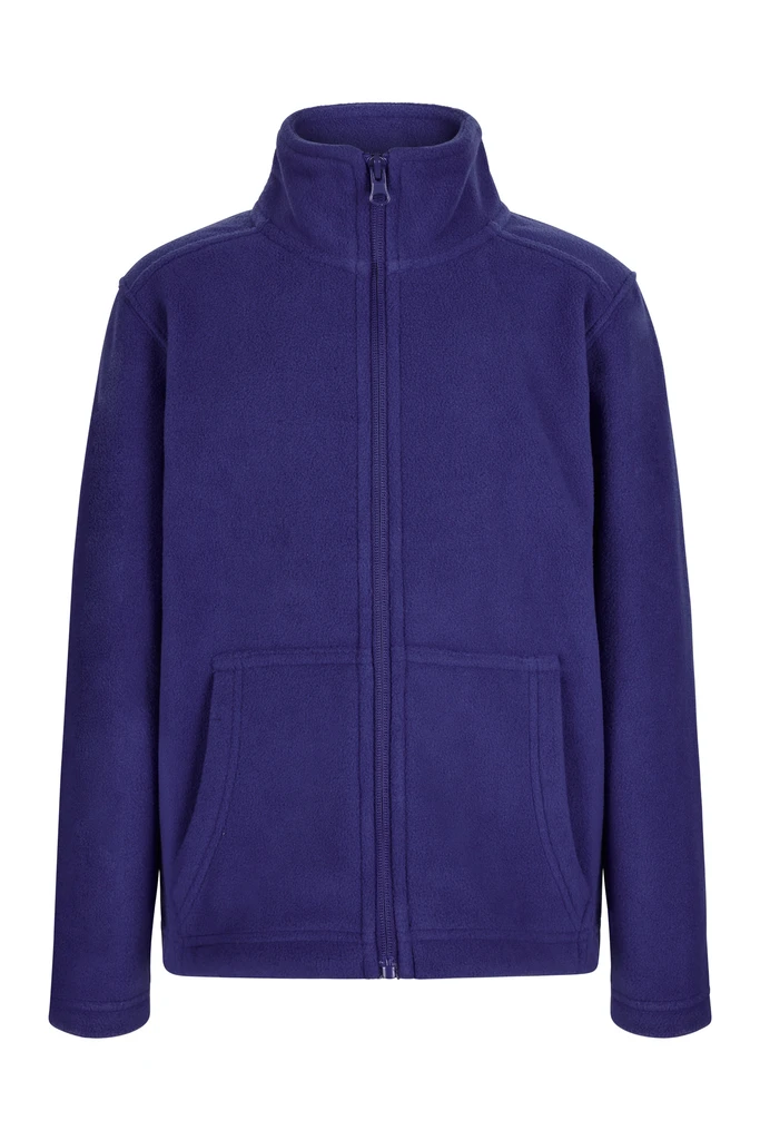 CHILDREN'S polar fleece jacket. Polar Fleece. 100% polyester. 280 g/m². High collar. Soft polar fleece, comfortable and warm. Excellent results in lint resistance tests. Complete reverse zip with plastic puller (sizes 9/11 and 12/14 only). Kangaroo pocket with fine binding. Reinforced herringbone inner tape around the neck.