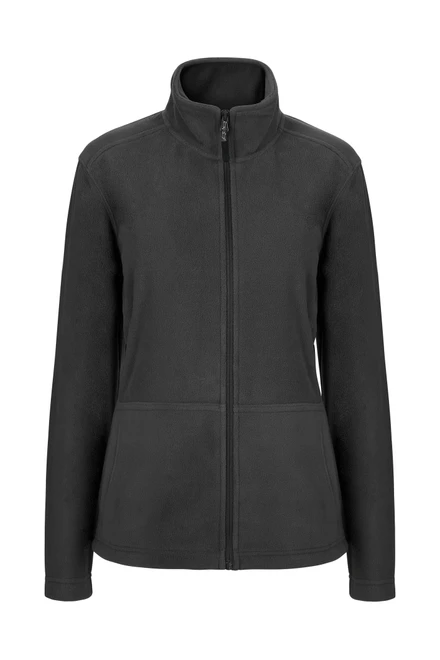 WOMEN'S polar fleece jacket. Polar Fleece. 100% polyester. 280 g/m². High collar. Soft polar fleece, comfortable and warm. Excellent results in lint resistance tests. Full reverse zip with plastic pull. Kangaroo pocket with fine binding. Reinforced herringbone inner tape around the neck. Slim fit.