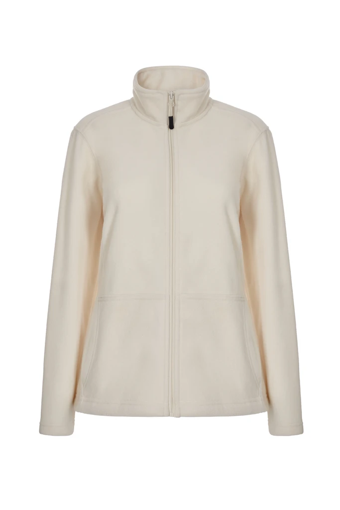 WOMEN'S polar fleece jacket. Polar Fleece. 100% polyester. 280 g/m². High collar. Soft polar fleece, comfortable and warm. Excellent results in lint resistance tests. Full reverse zip with plastic pull. Kangaroo pocket with fine binding. Reinforced herringbone inner tape around the neck. Slim fit.