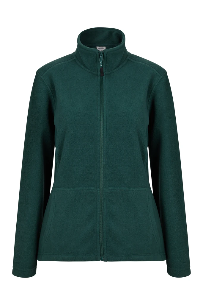 WOMEN'S polar fleece jacket. Polar Fleece. 100% polyester. 280 g/m². High collar. Soft polar fleece, comfortable and warm. Excellent results in lint resistance tests. Full reverse zip with plastic pull. Kangaroo pocket with fine binding. Reinforced herringbone inner tape around the neck. Slim fit.