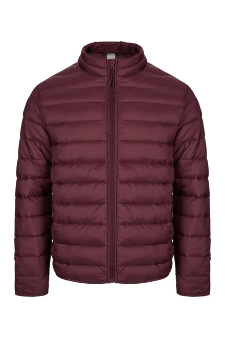 UNISEX padded jacket. 100% Polyamide. 380T. 310 g/m². Water repellent. Feathers like fake feathers. Full front reverse zip with chin guard. 2x side pocket with reverse zip. Tone-on-tone zip with plastic tip and polyester puller. Slanted trim on bottom and cuffs. Hanging loop on the inside of the collar.