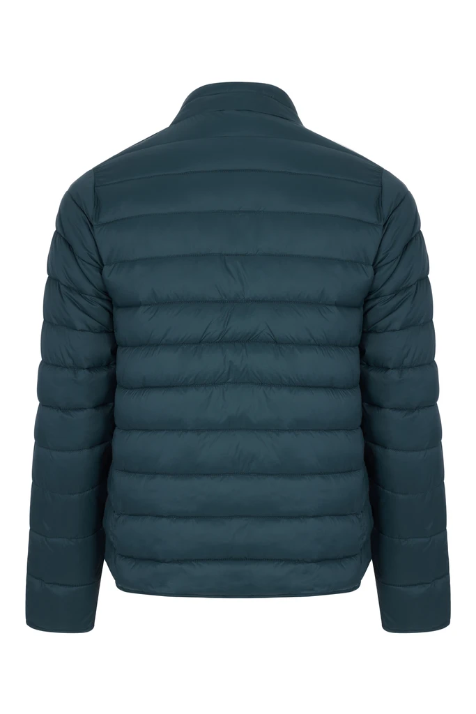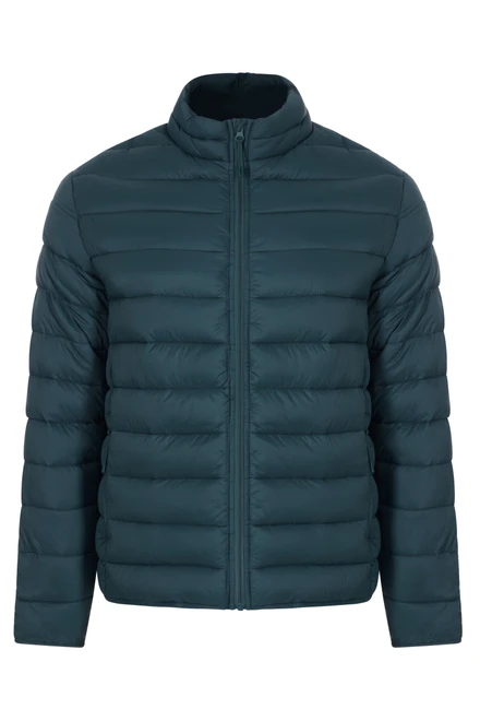 UNISEX padded jacket. 100% Polyamide. 380T. 310 g/m². Water repellent. Feathers like fake feathers. Full front reverse zip with chin guard. 2x side pocket with reverse zip. Tone-on-tone zip with plastic tip and polyester puller. Slanted trim on bottom and cuffs. Hanging loop on the inside of the collar.