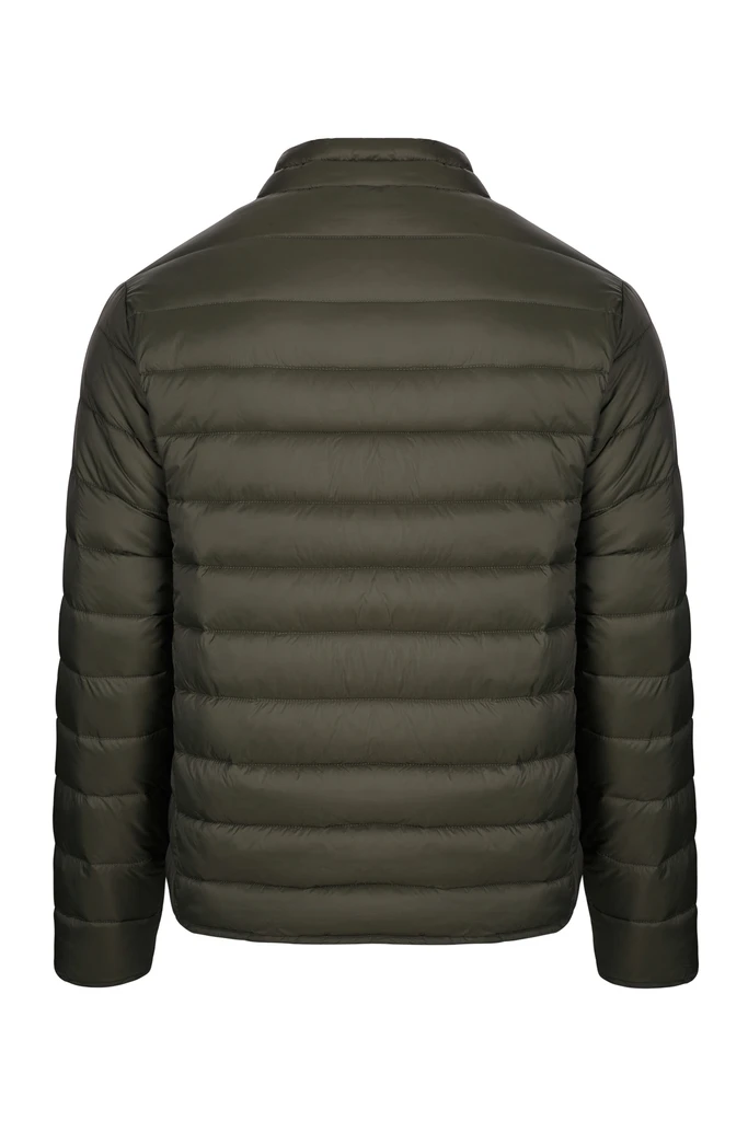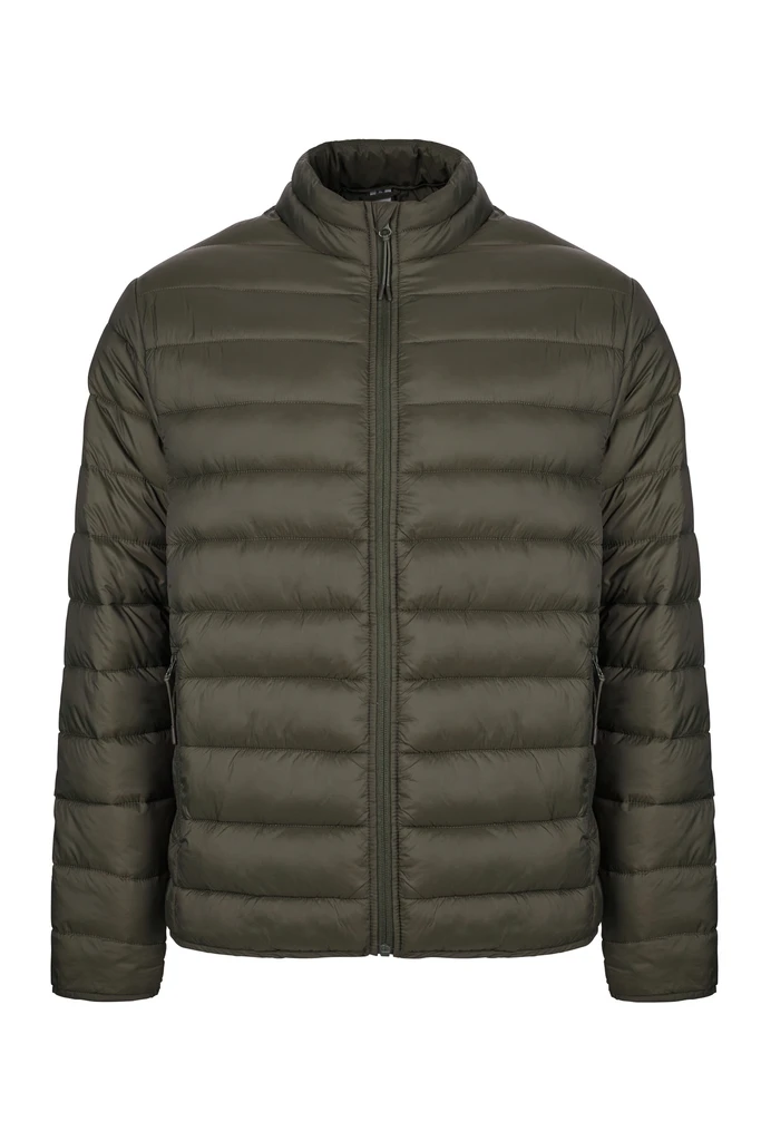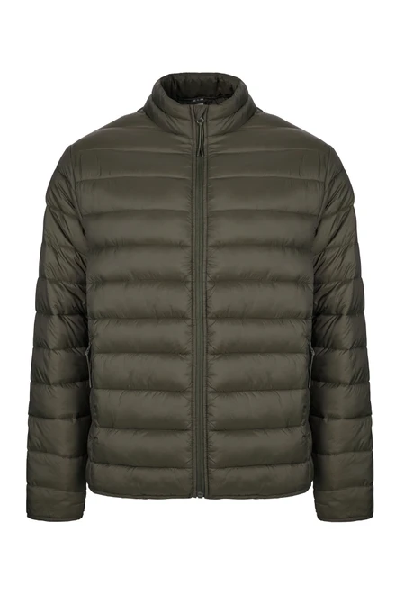 UNISEX padded jacket. 100% Polyamide. 380T. 310 g/m². Water repellent. Feathers like fake feathers. Full front reverse zip with chin guard. 2x side pocket with reverse zip. Tone-on-tone zip with plastic tip and polyester puller. Slanted trim on bottom and cuffs. Hanging loop on the inside of the collar.