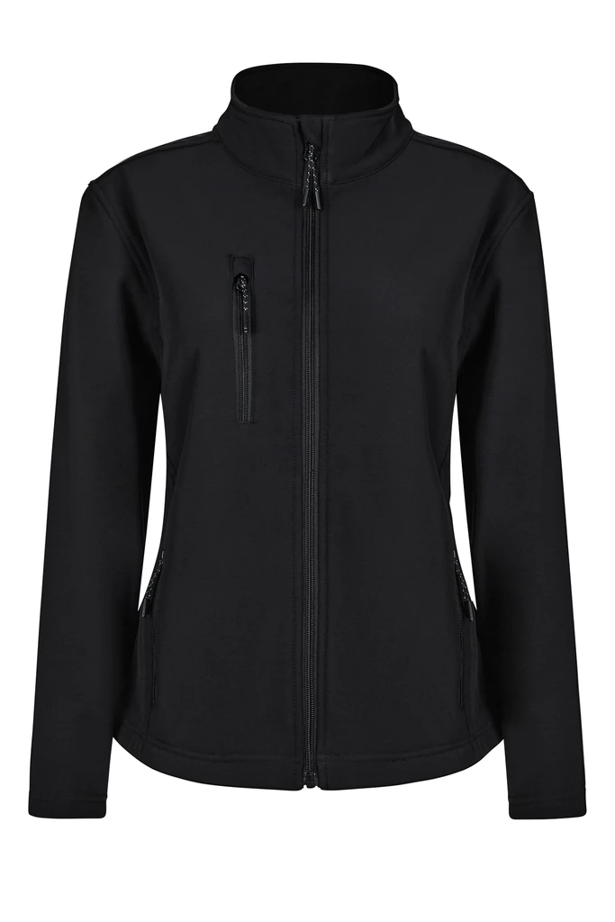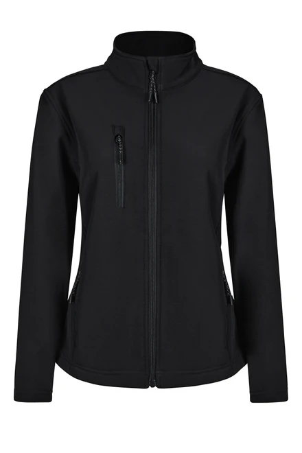 WOMEN'S softshell jacket. 94% Polyester - 6% Elastane. 280 g/m². Water repellent. Soft and warm polar fleece lining. Full front reverse zip with chin guard. 3 x zip pockets. Tone-on-tone zip with plastic tip and polyester puller. Rounded back longer than front. Hanging loop on the inside of the collar.