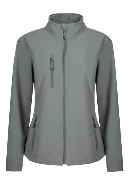 WOMEN'S softshell jacket. 94% Polyester - 6% Elastane. 280 g/m². Water repellent. Soft and warm polar fleece lining. Full front reverse zip with chin guard. 3 x zip pockets. Tone-on-tone zip with plastic tip and polyester puller. Rounded back longer than front. Hanging loop on the inside of the collar.