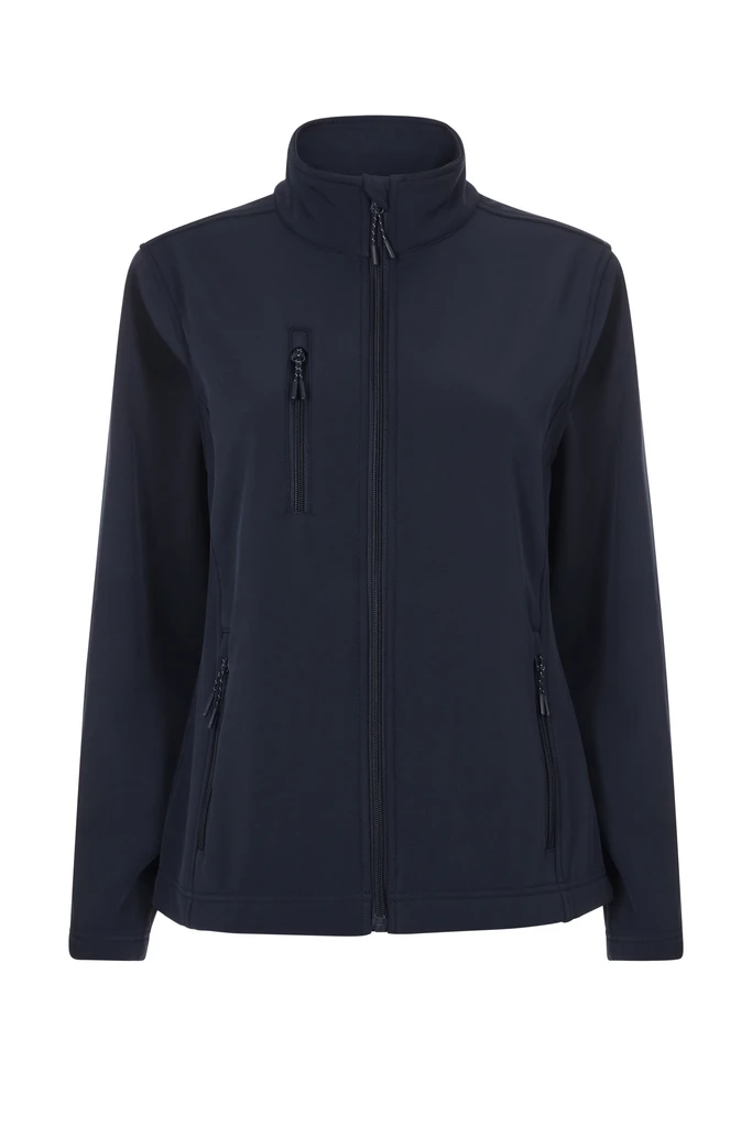 WOMEN'S softshell jacket. 94% Polyester - 6% Elastane. 280 g/m². Water repellent. Soft and warm polar fleece lining. Full front reverse zip with chin guard. 3 x zip pockets. Tone-on-tone zip with plastic tip and polyester puller. Rounded back longer than front. Hanging loop on the inside of the collar.